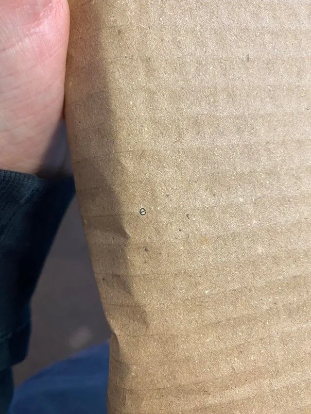 На картонной коробке обнаружил букву «e», которая пережила процесс переработки