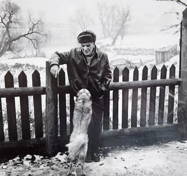 Писатель Константин Паустовский и его собака Грозный, 1962 год