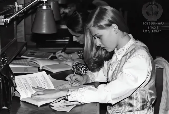 Студентки в читальном зале Российской государственной библиотеки, Москва 1998 год