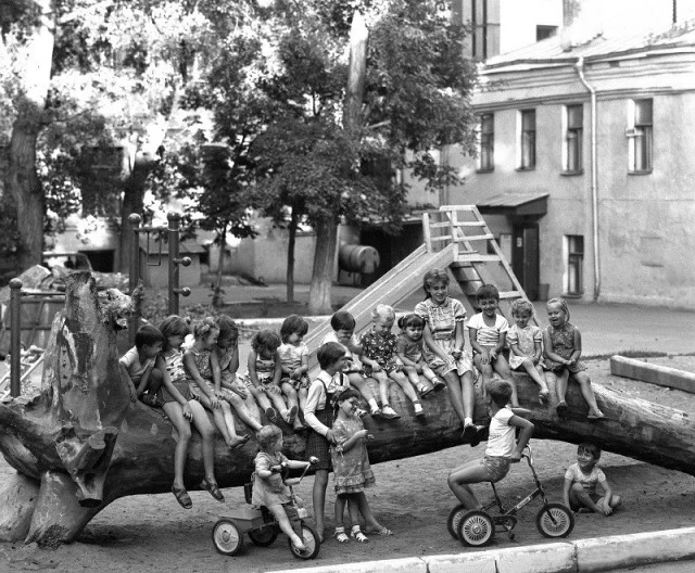 Московский двор, в котором центром стало упавшее дерево, 1970-е