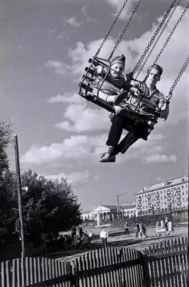 Катания на цепочной карусели в ПКиО им Ленинского комсомола (ныне "Швейцария") г. Горький