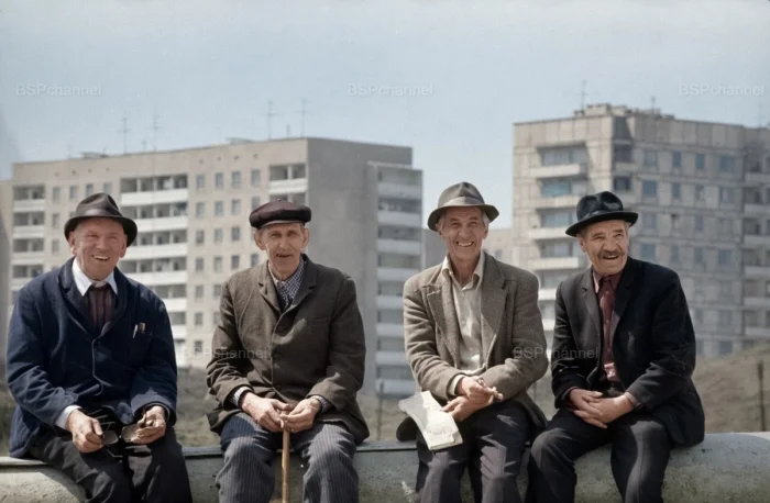 Шахтеры-пенсионеры, друзья Джона (Ивана) Пинтера - знаменитого донецкого шахтера, приехавшего в СССР из США в 1921 году и всю жизнь прожившего на Украине.