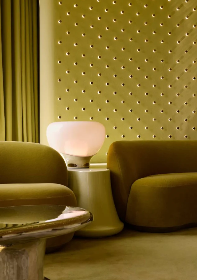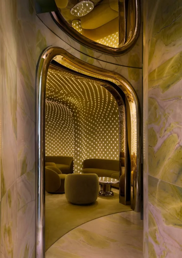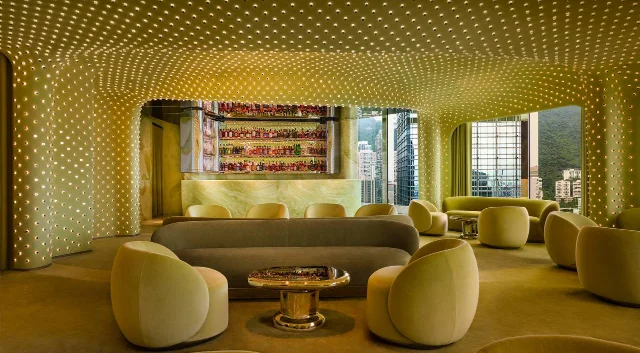 На 38-м этаже нового небоскрёба The Henderson в Гонконге открылся бар Peridot, оформленный в футуристическом стиле. Интерьер пространства, разработанный канадской студией Studio Paolo Ferrari, выполнен в тёплых оливковых тонах и напоминает уютный «кокон» с панорамным видом на город. Само здание башни создано бюро Zaha Hadid Architects и уже стало заметным архитектурным событием для Гонконга. На фоне замедлившегося строительства новых небоскрёбов в городе проект The Henderson особенно выделяется среди современной застройки.