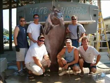 мдя ихтиологию вы плоховато знаете одноначно. рыбка эта морской окунь их ещё называют Группер (Epinephelus itajra) длина до 220 см и боле, вес - 200 кг :punk: :i_here: