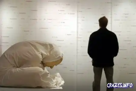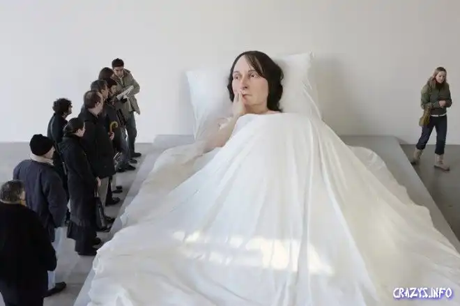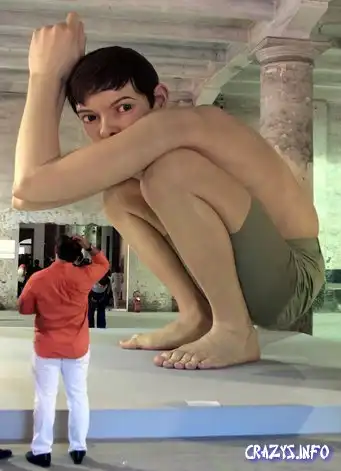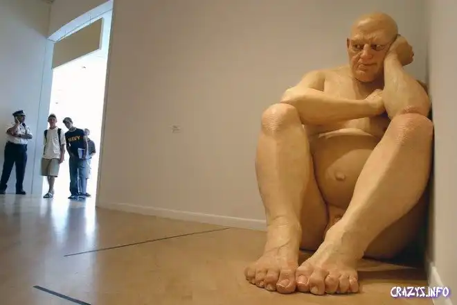 Автор - австралиец Рон Мьюек (Ron Mueck) всегда терроризировал зрительское восприятие своими до ужаса натуралистичными скульптурами, в которых, как во всяком экстремальном натурализме, чем жизнеподобнее, тем мертвее
