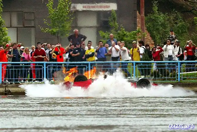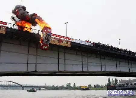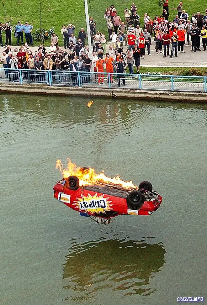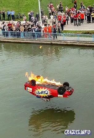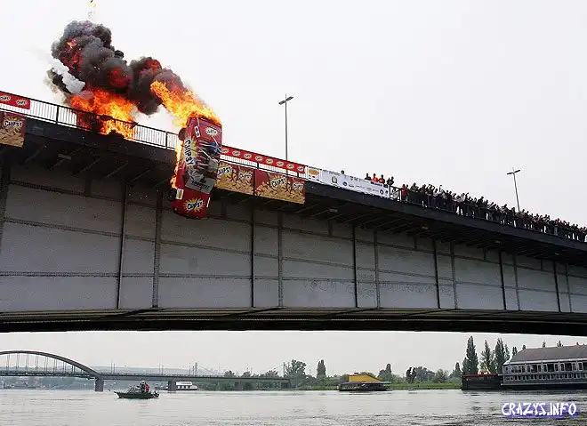 Вчера известный сербский каскадер Zeljko Bozic устроил в Белграде шоу со взрывом и падением в реку на машине. Вроде бы, для нового рекламного ролика чипсов. Похоже, что в этот раз отчаянный серб немного не рассчитал – сейчас он в госпитале и, как пишут, "сражается за свою жизнь".