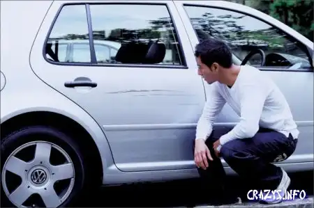 После того, как хозяин машины приходит в себя после увиденного, он начинает рассматривать царапину, а там номер телефона и адрес СТО
