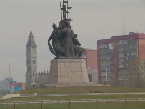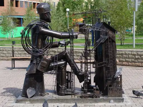 Центральная улица города - улица Ленина, памятник основателям Сургута