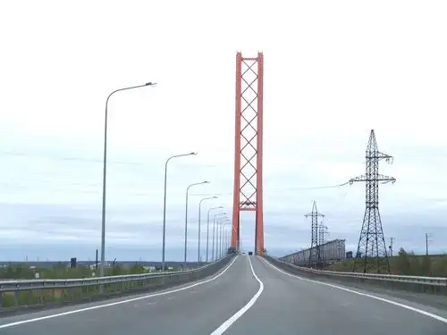 Единственный по длине мост в России. По крайней мере так говорят. Мост через реку Обь. Длина его - больше 2 километров и висит он на стропах...