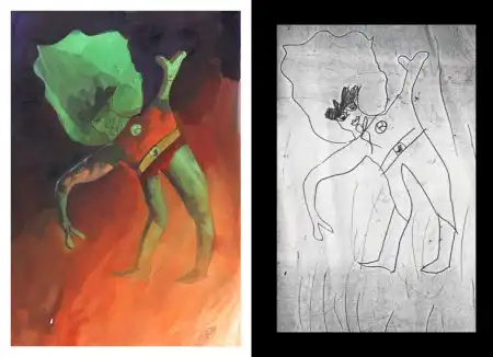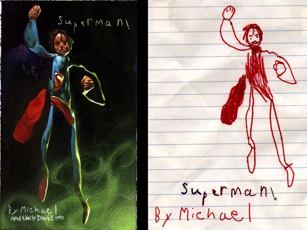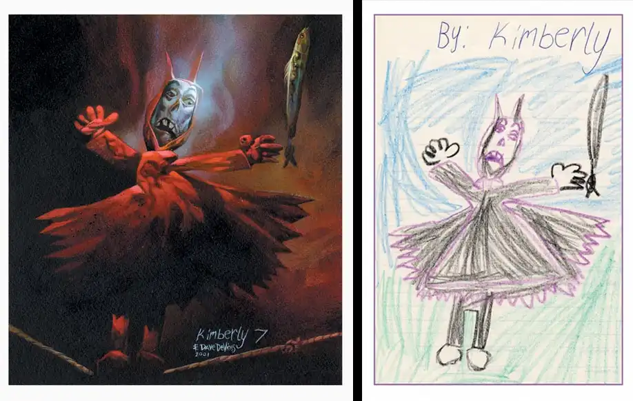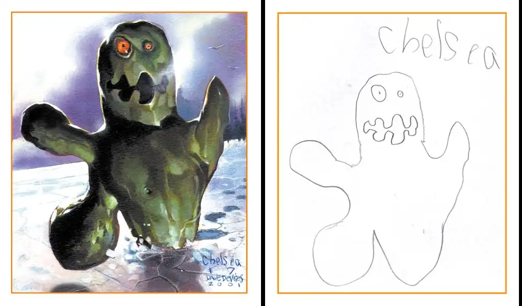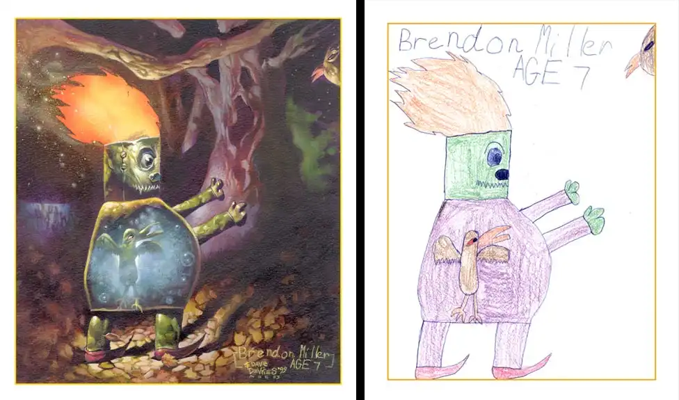 Художника зовут Dave Devries, его проект скромно зовется The Monster Engine. Ему в голову пришла гениальная идея "дорисовывать" детские каракули... Смотрим, что из этого получилось! На мой взгляд, весьма необычно, и совсем не по-детски...