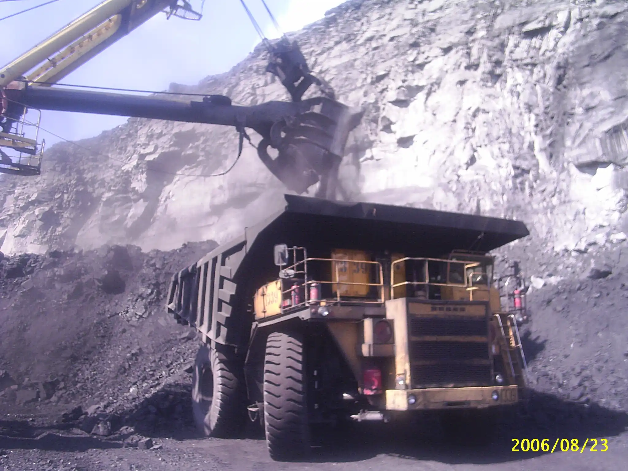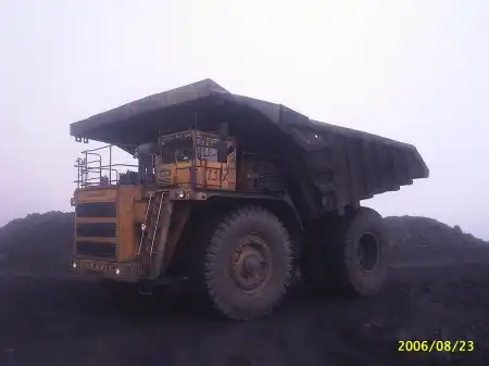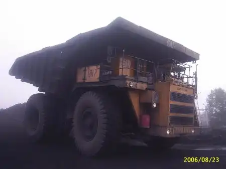 БелАЗ 7514-10 "Чебурашка" под загрузкой... 110 тонн угля...