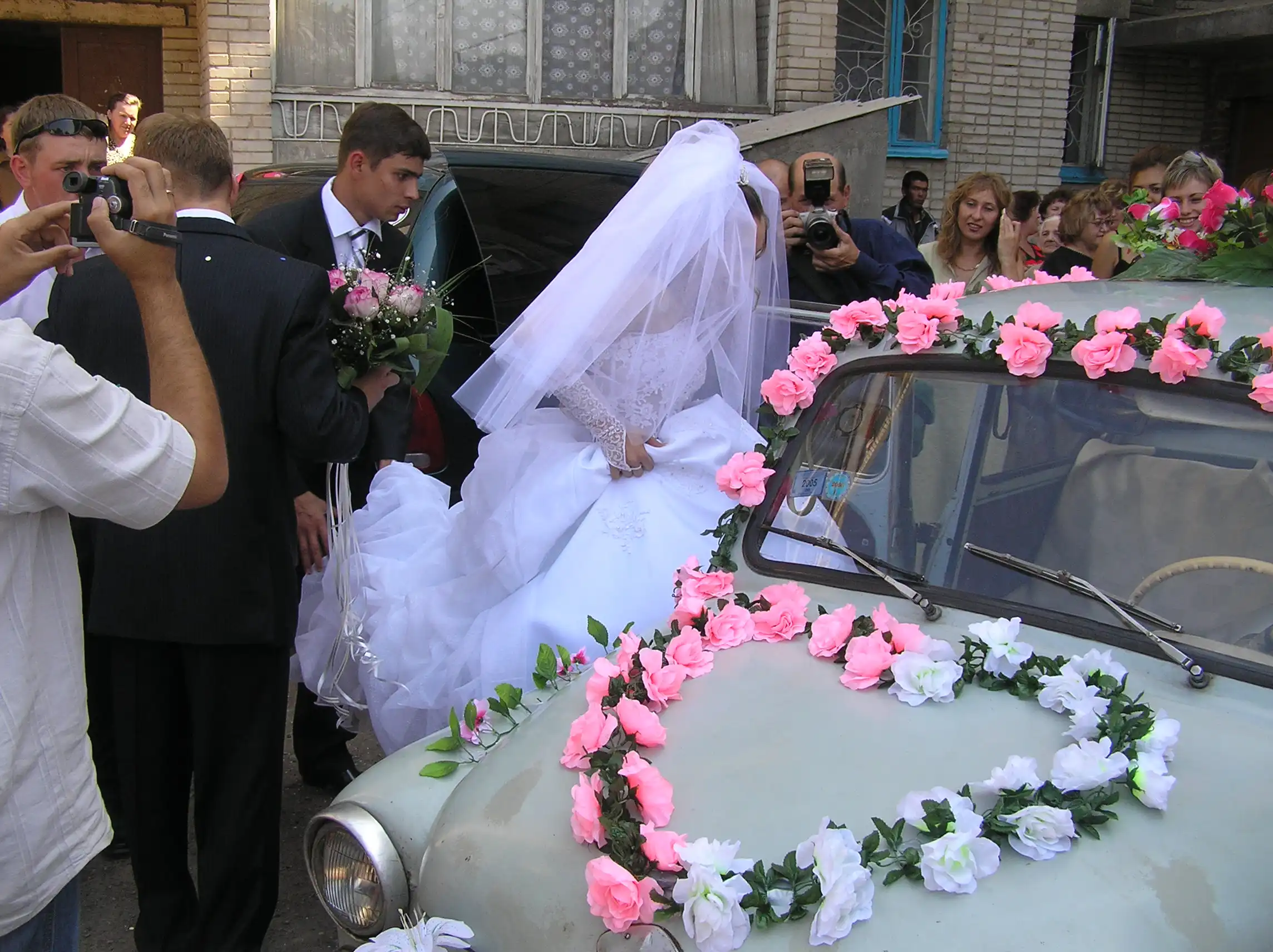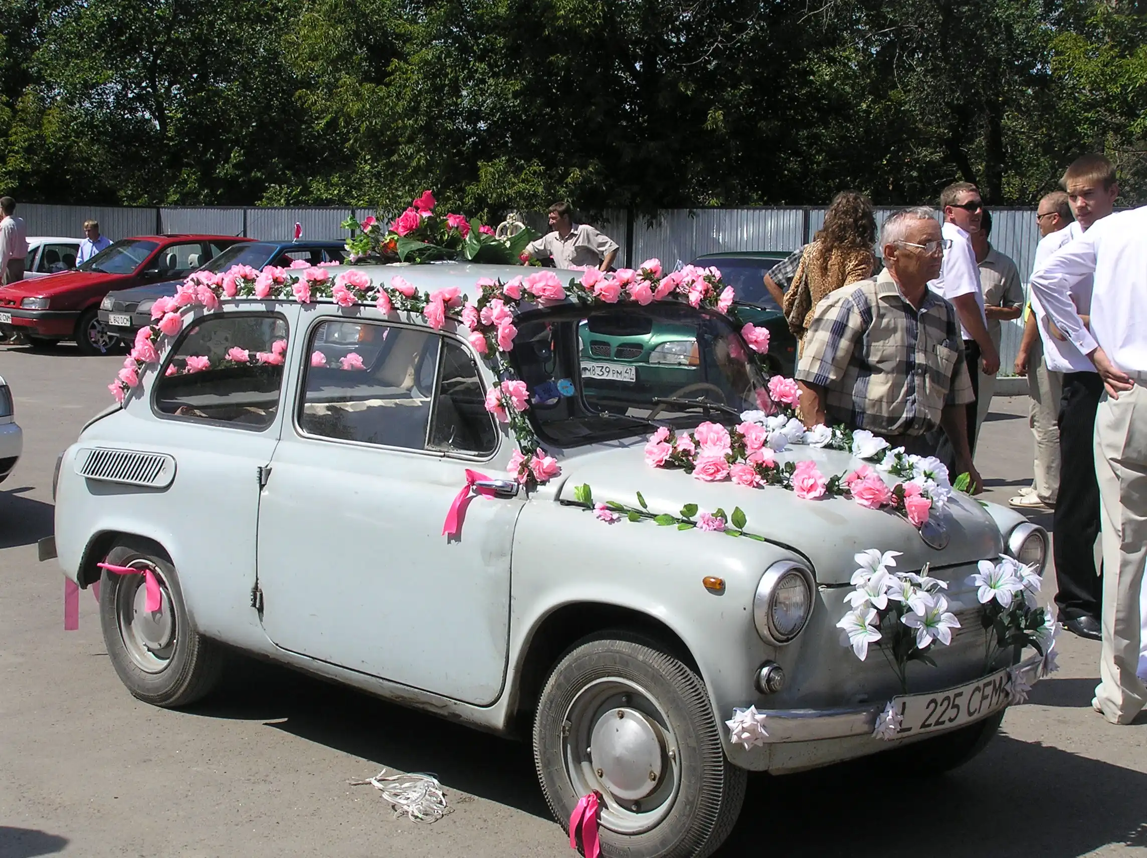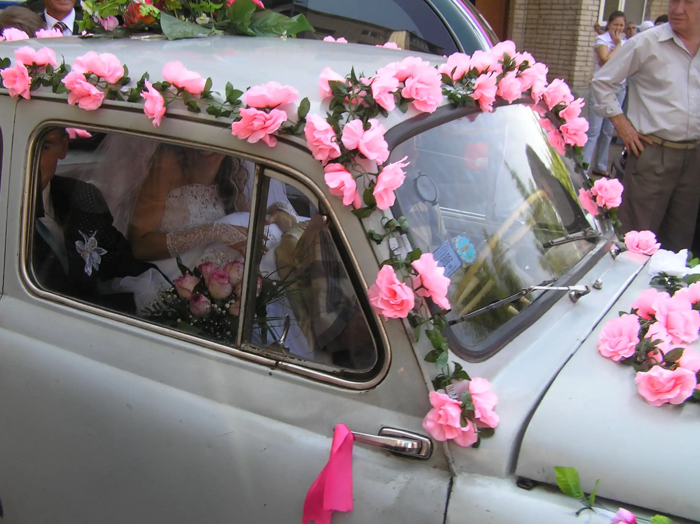 Переднее правое сиденье было убрано, чтобы было проще в машинку в платье забираться