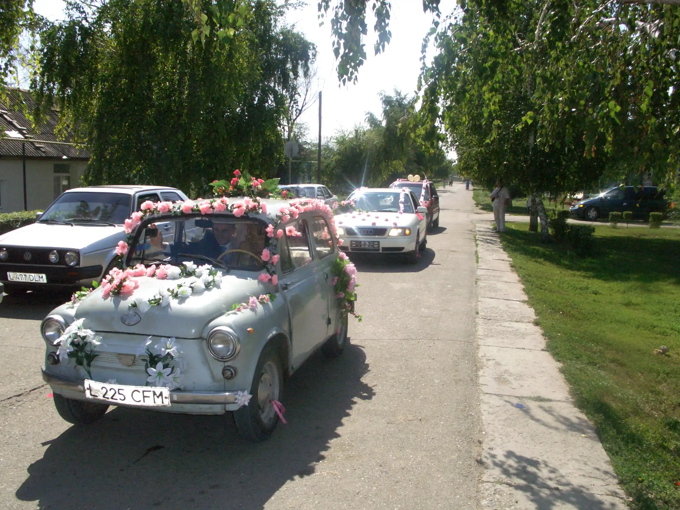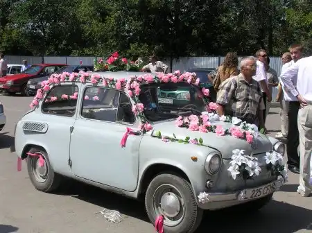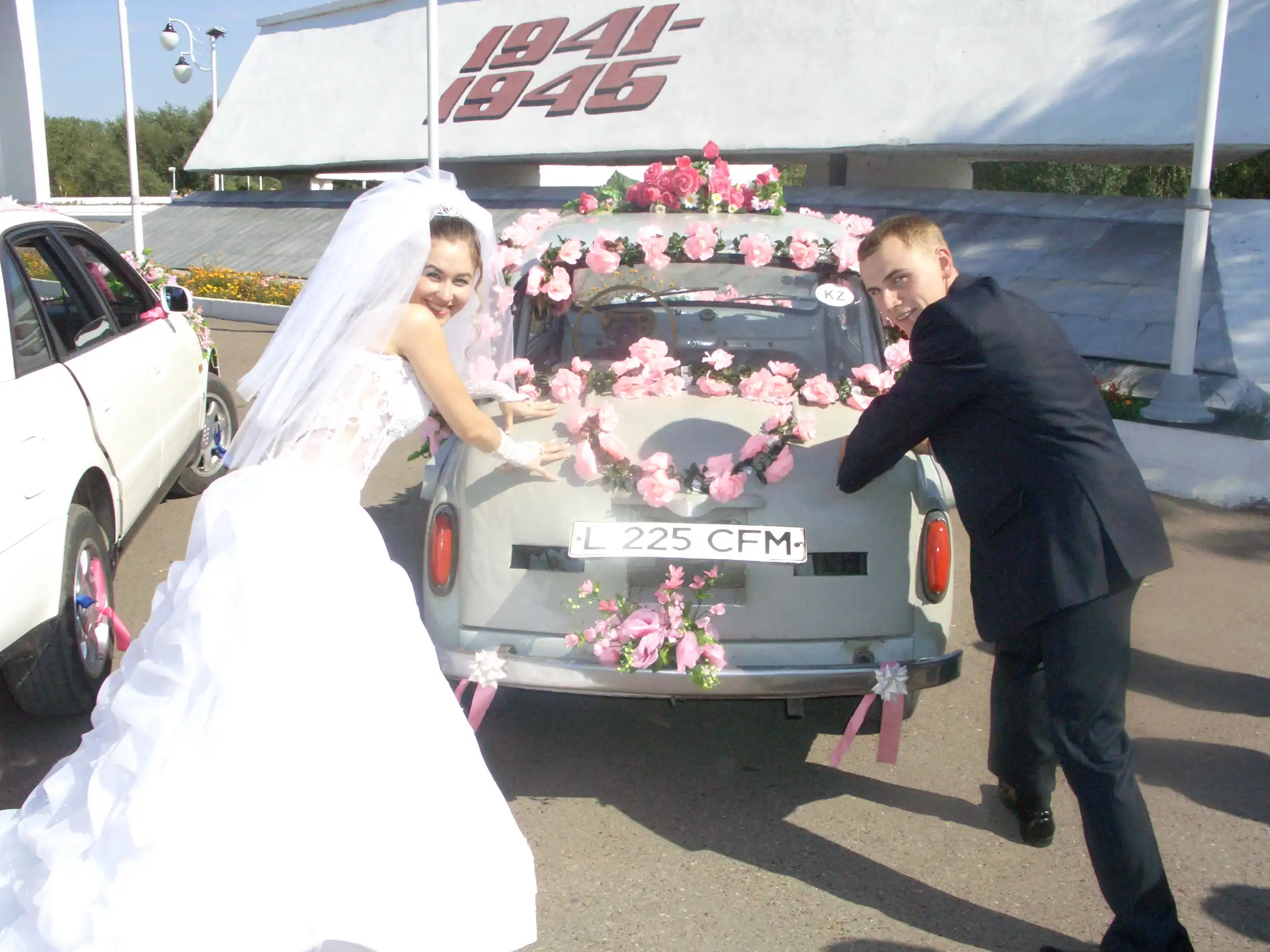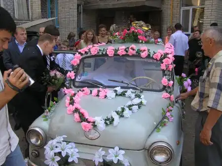 Переднее правое сиденье было убрано, чтобы было проще в машинку в платье забираться