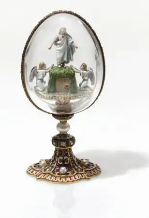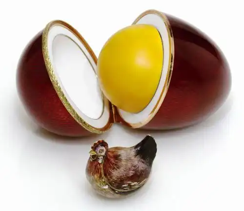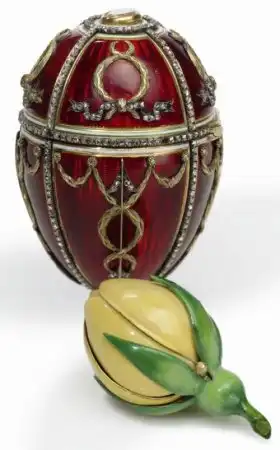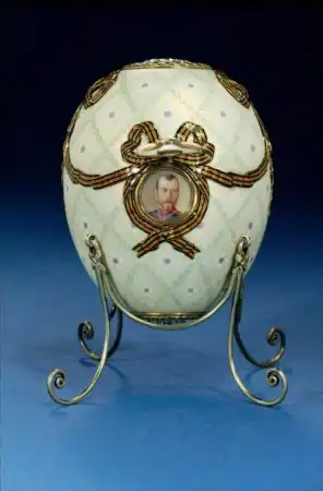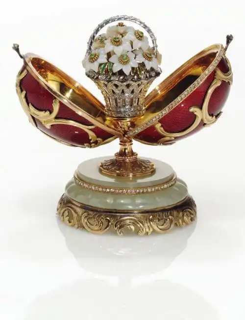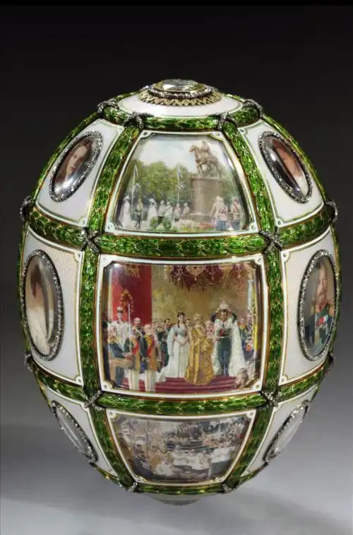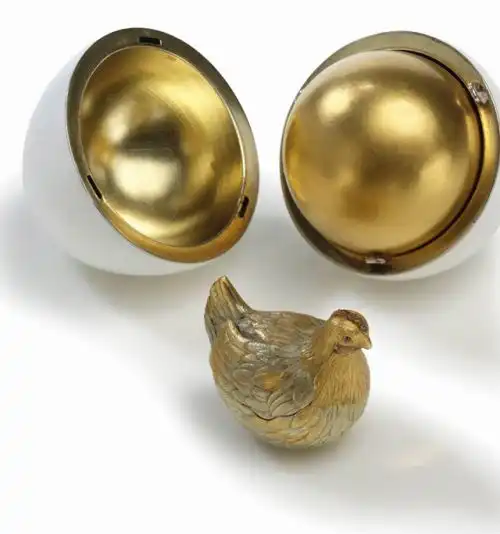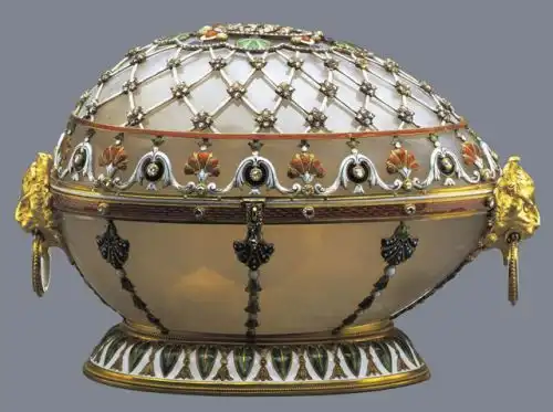 Это изделие было сделано на Пасху для супруги Александра III - Марии Федоровны. Именно с этой вещи началась традиция ежегодных подарков царской семьи, которые заказывались в фирме Фаберже.
