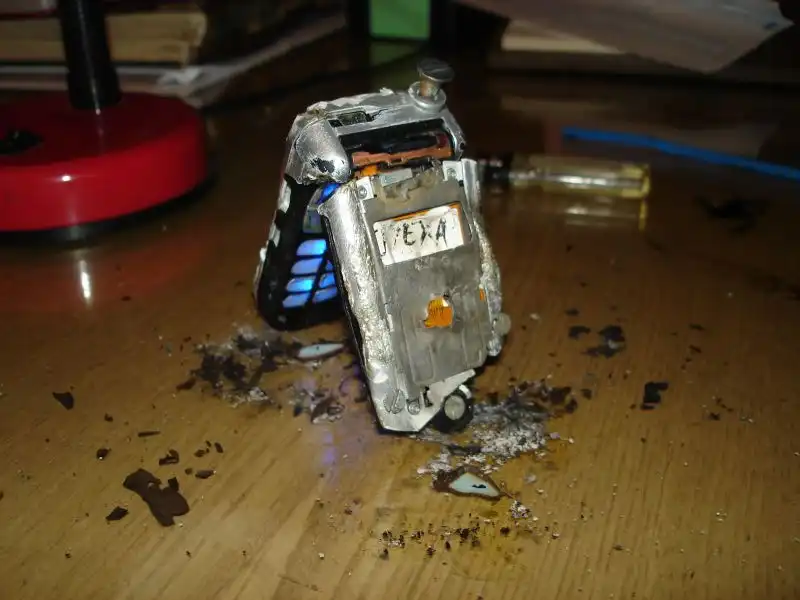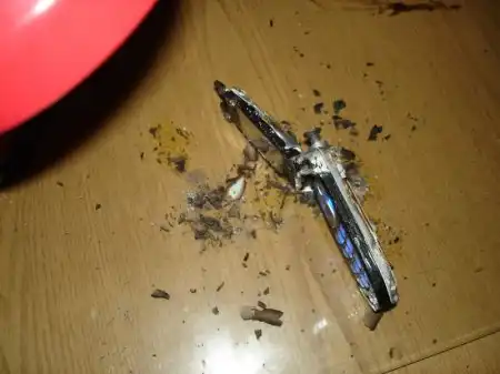 2. Затем все части были тщательно обработаны при помощи зажигалки, отвертки, ножа, шкурки, напильника и концентрированной серной кислоты.