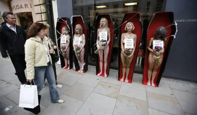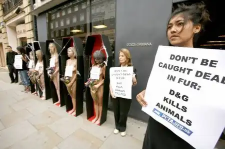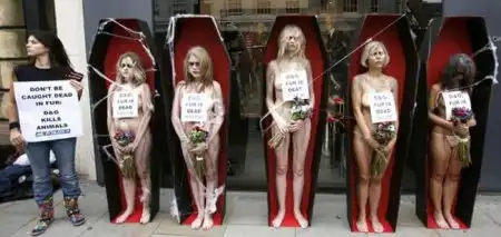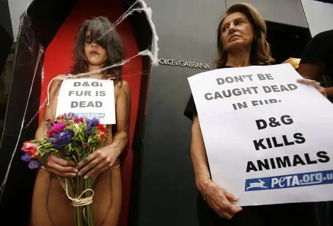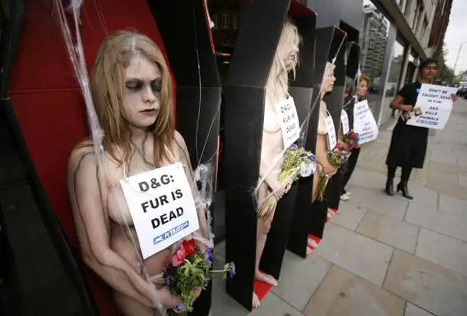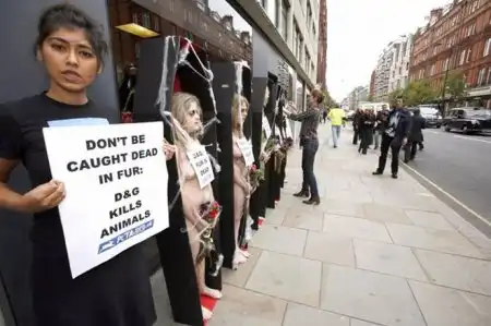 Вот так проходила демонстрация организации по защите прав животных PETA у бутика Dolce & Gabanna в Лондоне.