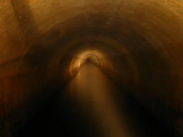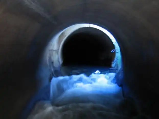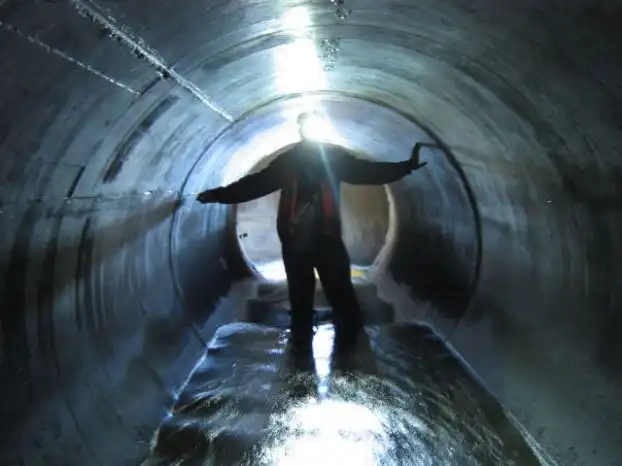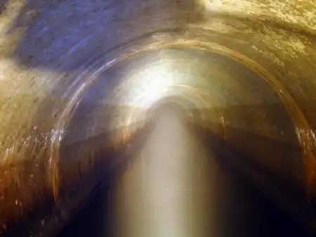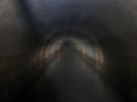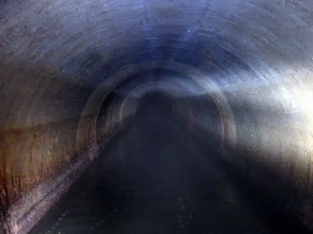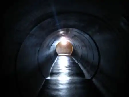 Подземная речка. Тоннель бетонный круглый, построен из колец. Длина 4 км, диаметр 2 метра.