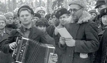 1943. Украинские партизаны встречают праздник в лесу: командир зачитывает поздравление