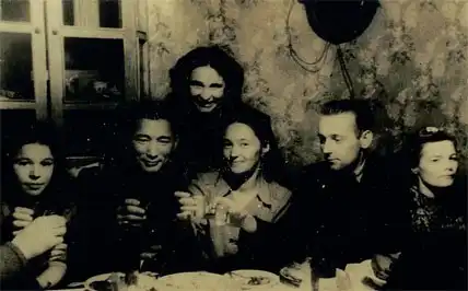 1956. Маша, дочь А.Шайхета, среди своих друзей в скромной московской квартире. Шарики — обязательны