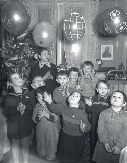 1959. В детском саду, конечно, не нальют шампанского, зато елка самая что ни на есть образцово-показательная