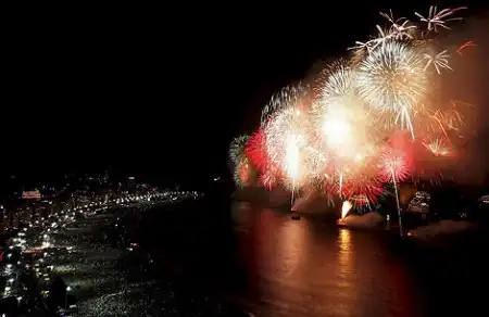 16-минутное огненное шоу на пляже Копакабаны (Рио-де-Жанейро) собрало почти два миллиона зрителей в новогоднюю ночь.