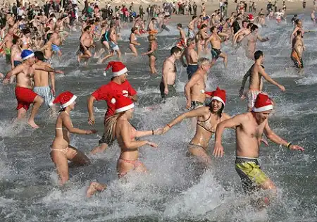 Традиционный новогодний заплыв в Таррагоне (Каталония, Испания).