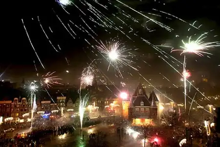 Фейерверки до утра освещали небо над Амстердамом (Нидерланды).