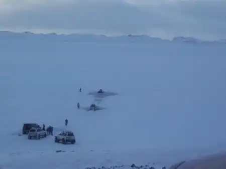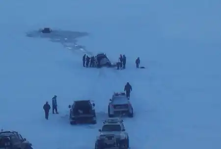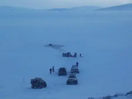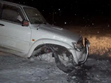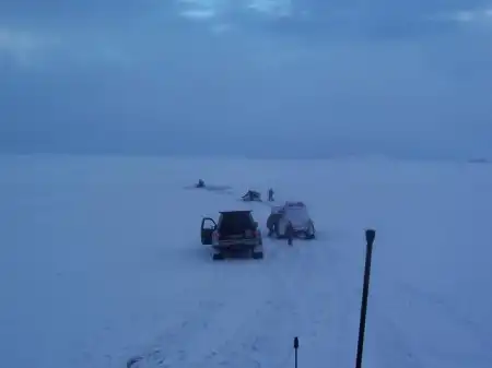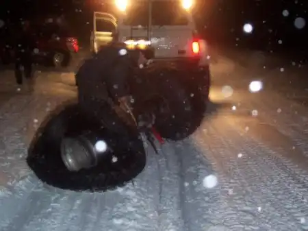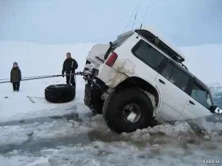 Джип провалился, колеса примерзли. Достали без них ))