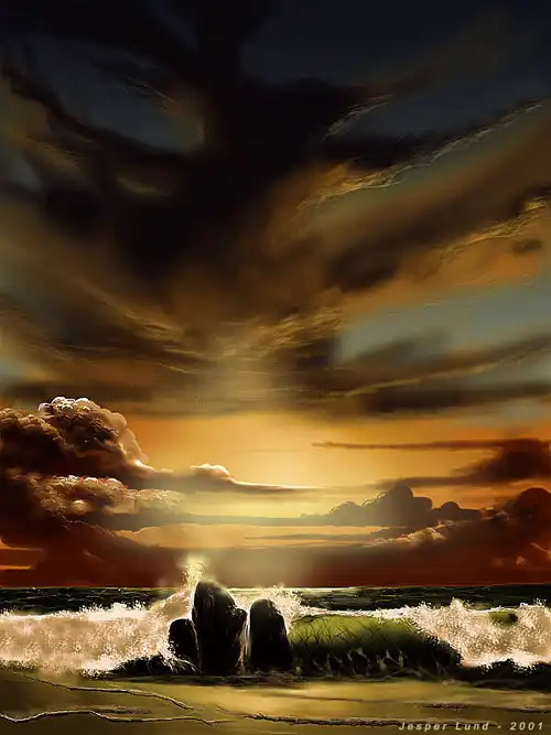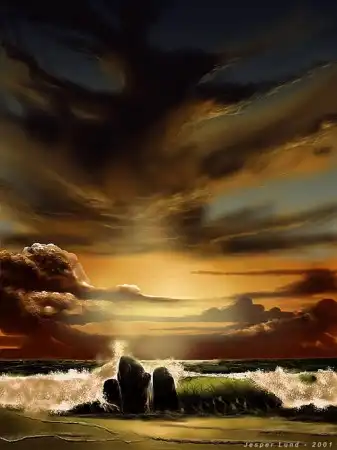 что море впитало энергию светила в себя, и солнце было укрощено, и огонь уже догорал в глубине.