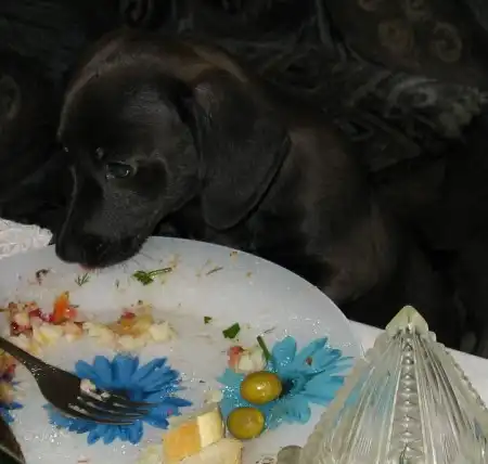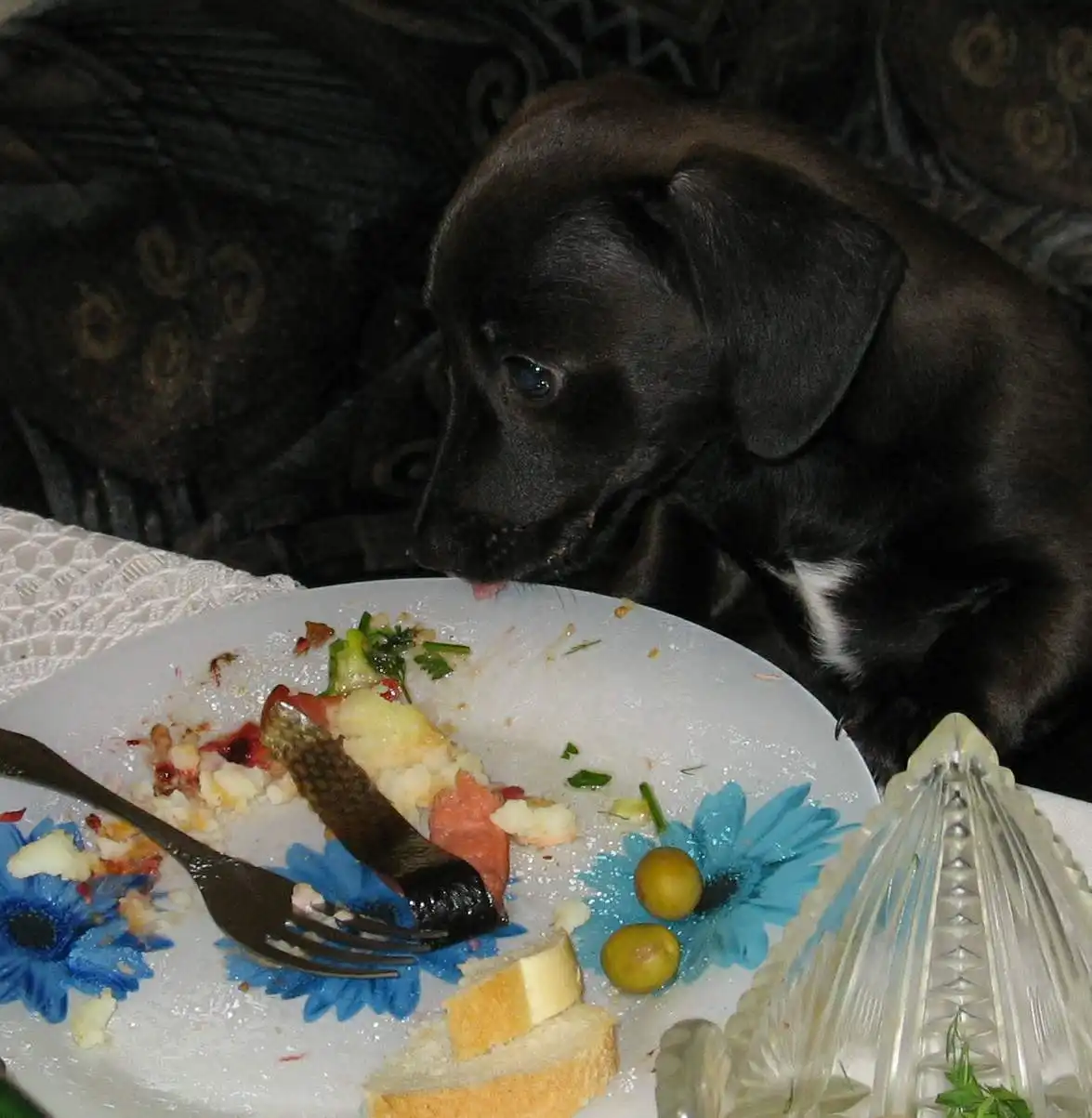 Собака- друг человека. Поэтому на правах друга может "покушать" и закусить.