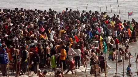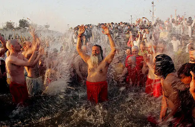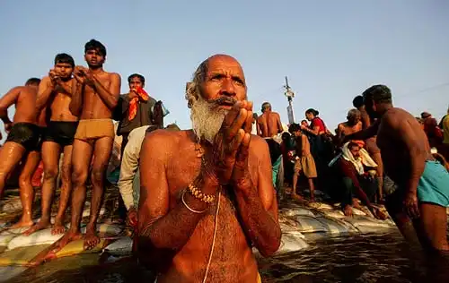 Миллионы индуистов собрались в городе Аллахабаде на севере Индии для праздника Ард Кумб, который называют сокращенной вполовину версией другого, более известного праздника Кумб Мела. Ард Кумб продлится полтора месяца. Согласно индуистскому поверью, купание в Сангаме, где соединяются воды трех священных рек - Ганга, Ямуны и мифической Сарасвати - приносит очищение от грехов.