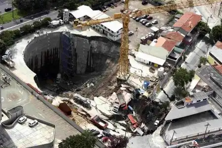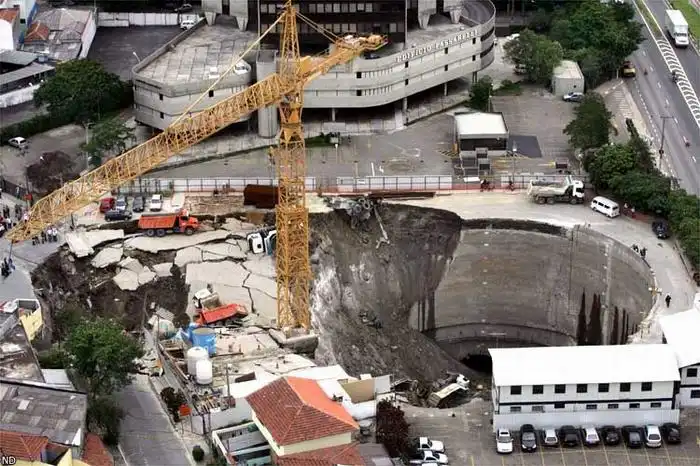 В бразильском городе Сан-Пауло ведутся поиски людей, пропавших в результате провала строящейся станции метро, на месте которой остался огромный кратер. Спасатели пытаются найти пассажиров микроавтобуса, провалившегося на 30-метровую глубину подземки в центральном районе Пинейрос. Из кратера уже удалось вытащить шесть автомобилей. Ведутся также поиски водителя грузовика.