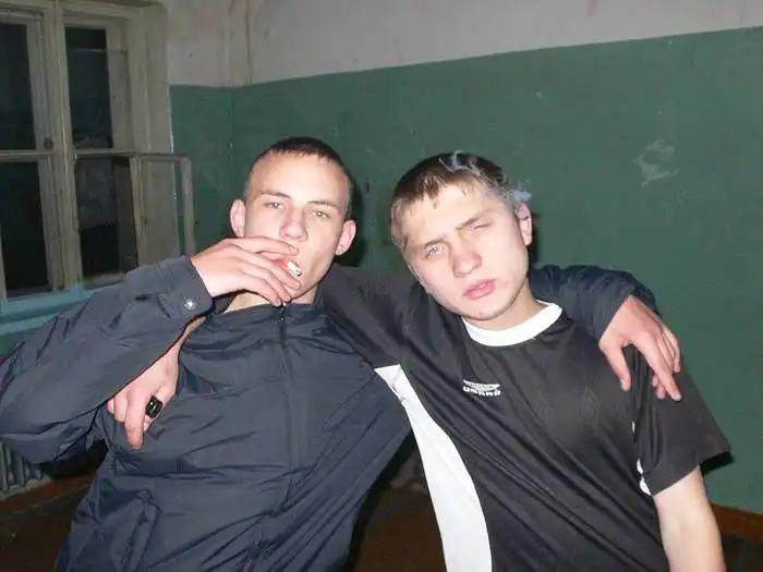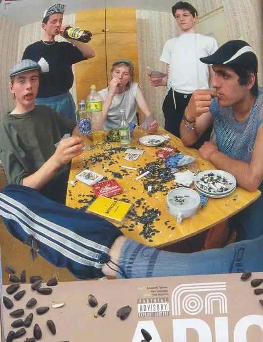 Спортивный костюм. Наиболее распространённая одежда в летний период. Как правило, костюм был куплен на рынке. Фирма-изготовитель, обозначенная на одежде, часто носит название, схожее с известными производителями, но немного искаженное, напр. «Abibas», «Pyma».