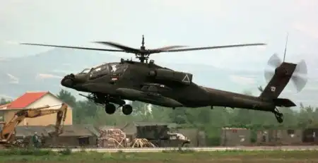 Вертолет АН-64А имеет следующее вооружение: противотанковые управляемые ракеты "Хеллфайр" с лазерной системой наведения, автоматическую пушку Хьюз Н230А-1 "Chaingun", установленную между основными стойками шасси, контейнеры с неуправляемыми авиационными ракетами. Использование двух независимых гидросистем, бронированной кабины и наиболее важных систем и участков планера, а также применение топливных баков специальной формы и конструкции позволило разработчикам создать машину, способную выполнить боевую задачу и вернуться на базу после попадания в вертолет снарядов калибром 23 мм. С 1985 года в США начались разработки нового вертолета АН-64В "Апач Браво", который имеет больший размах крыла и двигатели увеличенной мощности. Модификация включает замену электронного оборудования. В комплект вертолета входит нож для перерезания высоковольтных проводов. АН-64А "Апач" хорошо зарекомендовал себя во время войны в Ираке (1991 г.). В настоящее время компанией "Макдоннелл- Дуглас" производится новая модель вертолета AH-64D, получившая название "Лонгбоу Апач". AH-64D оборудован более современной системой управления вооружением, обеспечивающей ведение прицельной стрельбы с больших дистанций. ВВС Нидерландов и Королевские ВВС Великобритании планируют закупить 30 и 67 вертолетов AH-64D соответственно.