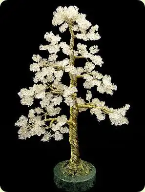 Дерево (Звенящий кедр) из хрусталя,подставка змеевик.