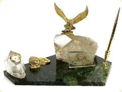 Настольный набор.Камни змеевик,горный хрусталь,литьё бронза.