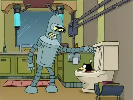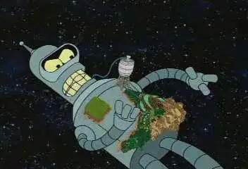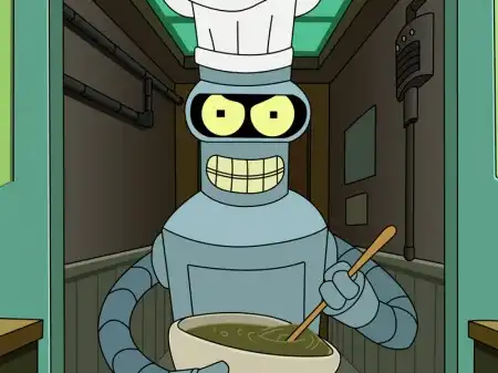 "Bite my shining metal ass!" ), курильщик, алкоголик (он получает энергию из спирта) и клептоман. Единственное чего он боится — автоматический консервный нож промышленного размера. Будучи подвержен действию сильного магнитного поля, бесконтрольно поёт песни в стиле кантри. Предназначался для сгибания балок, но бросил свою работу после того как узнал, что эти балки предназначены для будок самоубийств. Сделан в Мексике. Ненавидит практически всех людей, кроме Фрая и, немножко, Лилы.