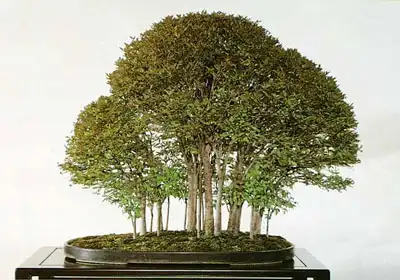 Бонсай обладает всеми признаками своего крупномерного прототипа: у него есть ствол, кора, ветви, листья, цветы, плоды; он также произрастает в почве, обнажая выступающие корни, в общем, повторяет модель произрастания дерева естественной величины. Грунт должен выглядеть натуральной частью рельефа, тщательно подобранные камни-«скалы» и мох - вызывать ассоциацию с природным лесным ландшафтом.