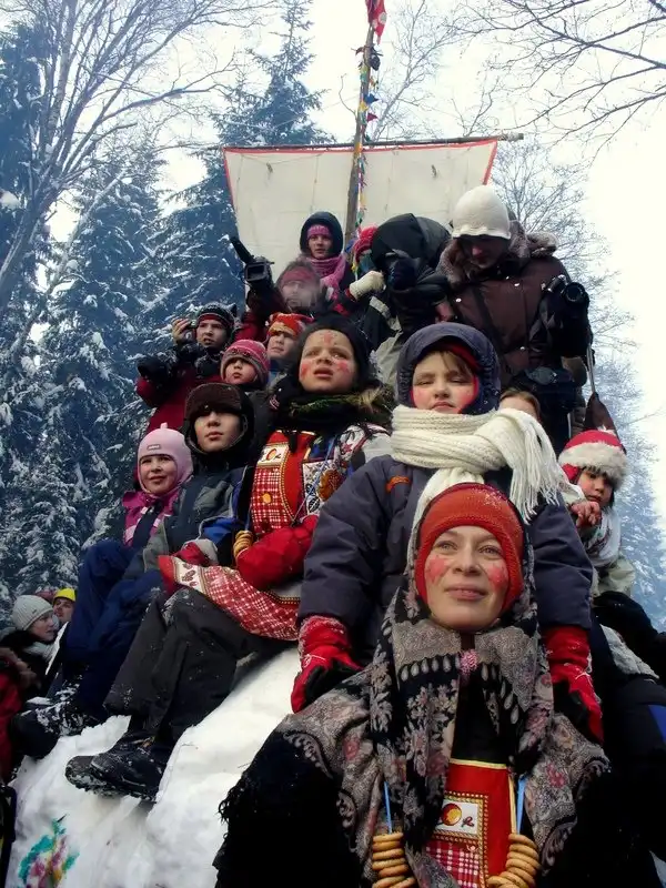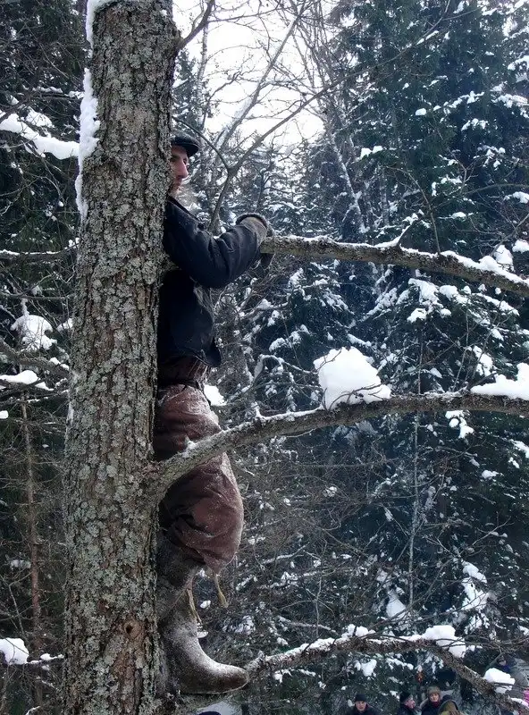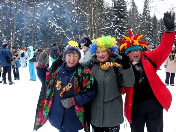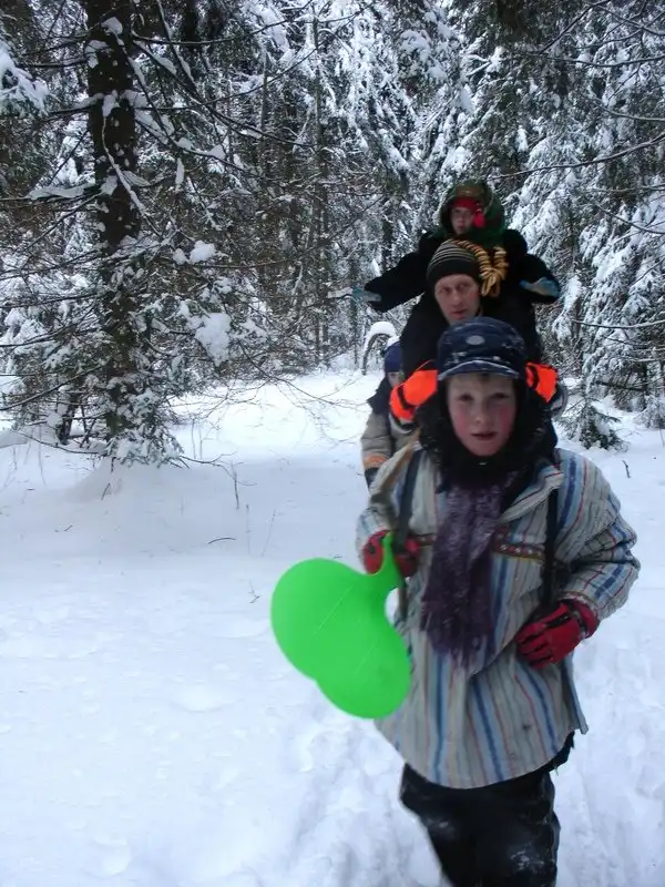 Эту Масленицу каждый год делают в разном месте - чтобы лес не мучить. Выбирают еще летом - должны быть большая поляна, ровная, подальше от деревень. Поэтому идти долго, но заснеженный лес и изредка попадающиеся люди того стоят. Ночевка в палатке в лесу, блины на костре, глинтвейн, Ванька, встречающий нас в шинели и танковом шлеме, все это - отдельное специальное удовольствие. Кстати, Саша и Лорик - спасибо за валенки - вообще не холодно). Утром выползаем на поляну - хороводы, чай из самоваров, народ в общем гуляет.