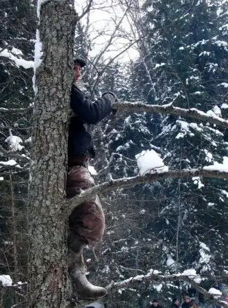 Второй ряд. Народ, кто знает, подготовленными приезжает - каски, защита. Никакие другие приспособления использовать нельзя. Детям и барышням сильно не рекомендуется, так что они с удовольствием закидывают защитников снежками снизу. Ну и фотографируют с деревьев))