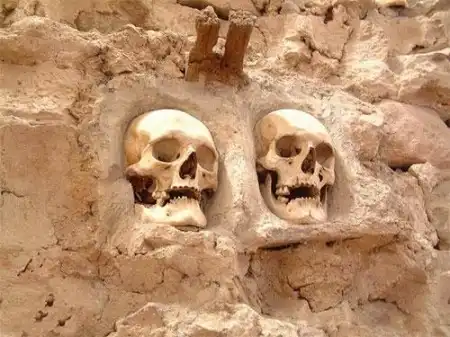 Черепа были замурованы с внешней стороны в ячейках между кирпичами в 56 рядов, по 17 в каждом. Всего 952 черепа.