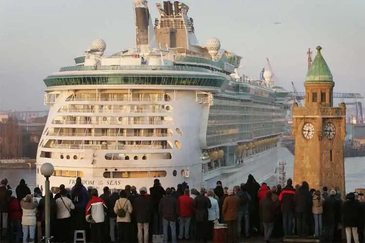 В Гамбурге Freedom of the Seas произвел настоящий фурор - туристы, желающие посмотреть на самый большой в мире круизный лайнер стоимостью 2 млрд. евро, заполнили всю пристань.