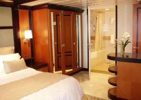 Все каюты и апартаменты оснащены плоско панельными TV. На лайнерах класса «Фридом» для больших компаний и семей предлагаются 6 различных типов размещения, включая Президентские апартаменты, общей площадью более 200 кв. метров. В Президентских апартаментах может разместиться до 14 пассажиров, к услугам которых, 4 спальни, 4 ванных комнаты, мраморная барная стойка, большая гостиная с обеденным столом, а также огромная веранда – холл с джакузи.