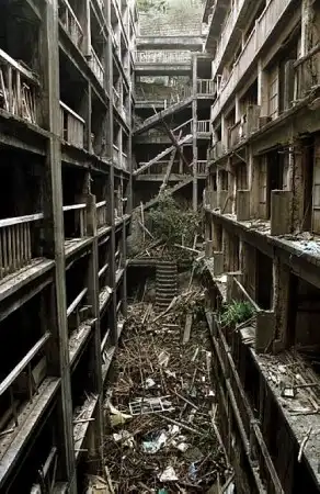 Остров Хашима (в переводе означает "Пограничный остров"), который обычно называют Гунканджима (означает "Остров боевых кораблей"), является одним из 505 островов в префектуре Нагасаки и находится на расстоянии 15 км от самого города Нагасаки. Остров был местом добычи угля с 1887 по 1974 гг. Остров интересен своими заброшенными зданиями.
