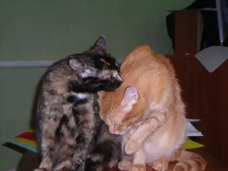 Кот Рыжик подлизывается к кошке Мурке, почуял,что весна близко