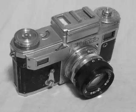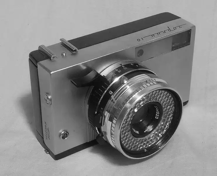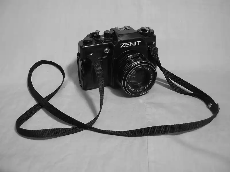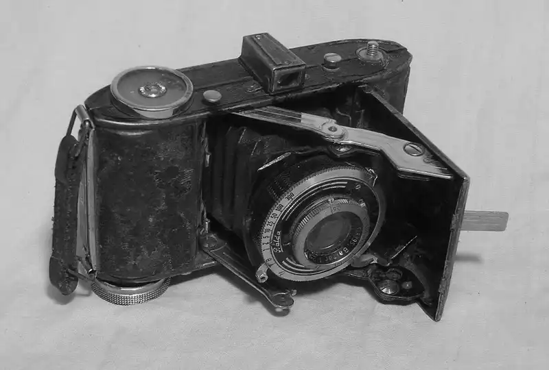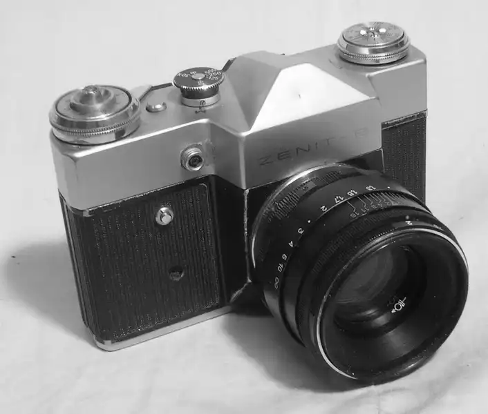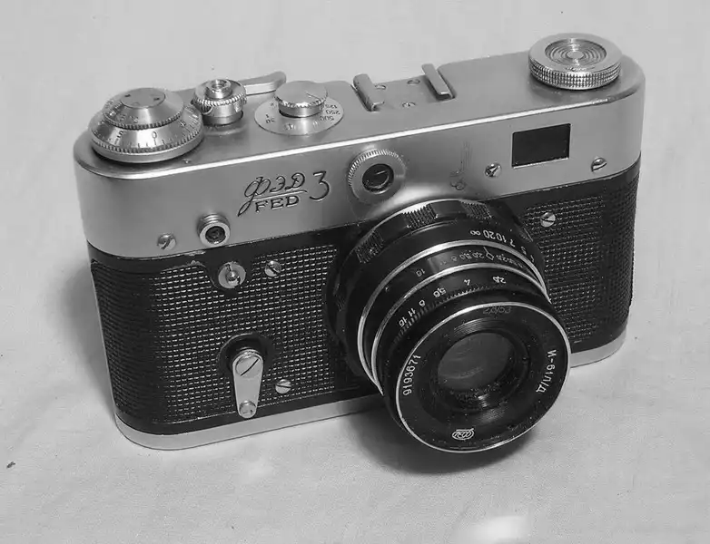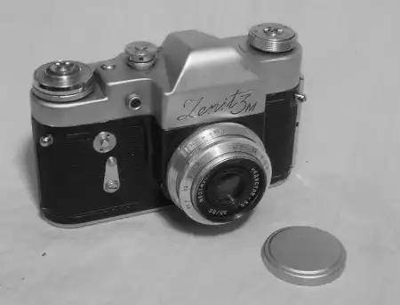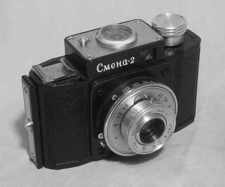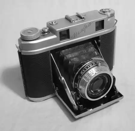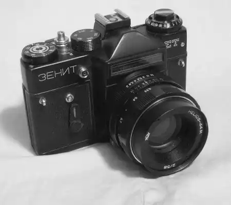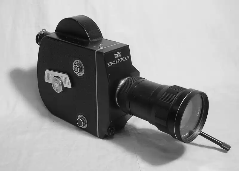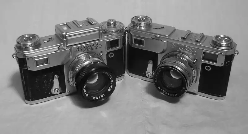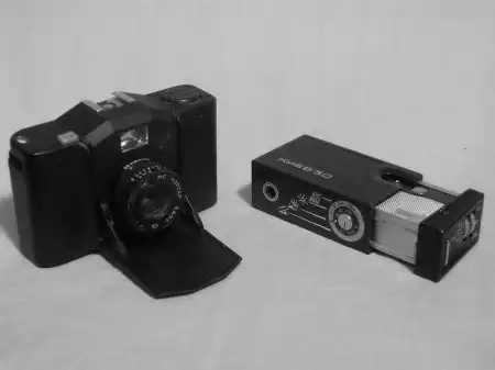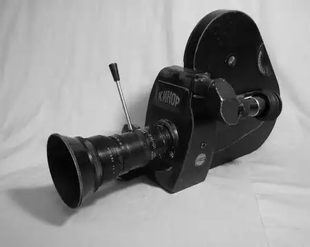 Старые фотоаппараты и кинокамеры.