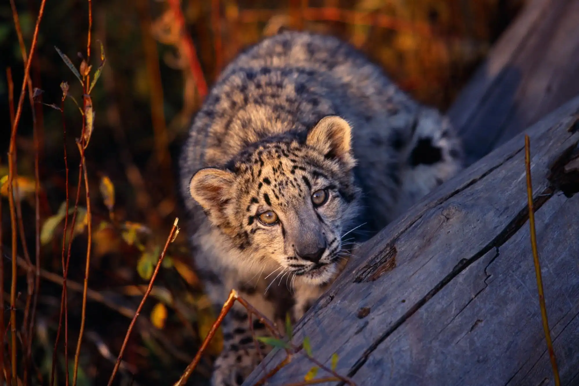 Этого представителя кошачьих еще называют ирбисом. Длина его тела вместе с хвостом больше двух метров.У него широкие лапы, чтобы не проваливаться в снег, и толстая шкура, цвет которой сливается с цветом скал, среди которых он живет.Ирбис чрезвычайно ловок: может преследовать свою жертву, прыгая по крутым склонам гор, и единственный среди кошачьих способен прыгнуть на 15 метров. Раньше люди охотились на снежного барса, но сейчас охота на него запрещена.