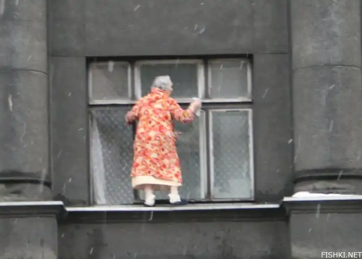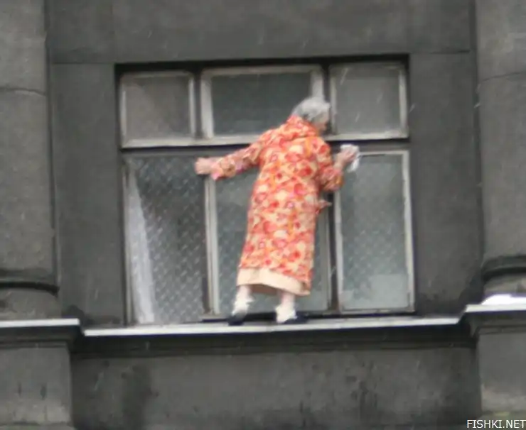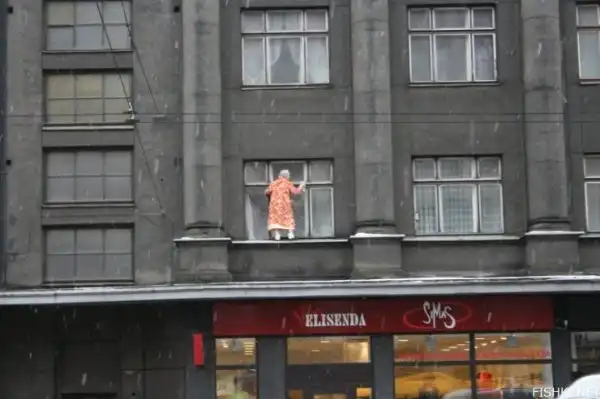 Вот так бабушка моет окна в Латвии (6 фото)
