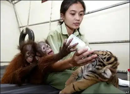 Дружба обезьянки и тигрёнка