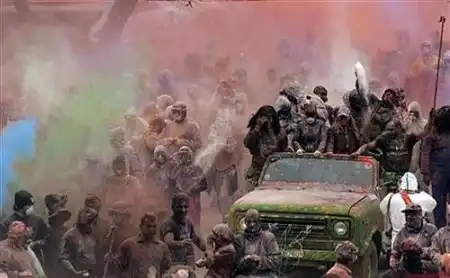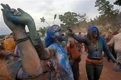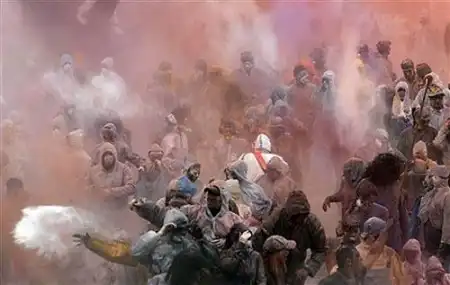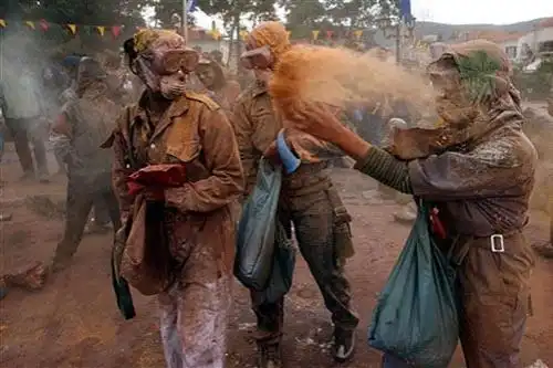 Желающие повеселиться запасаются несколькими мешочками с мукой, окрашенной во все цвета радуги, надевают маски и защитные костюмы…